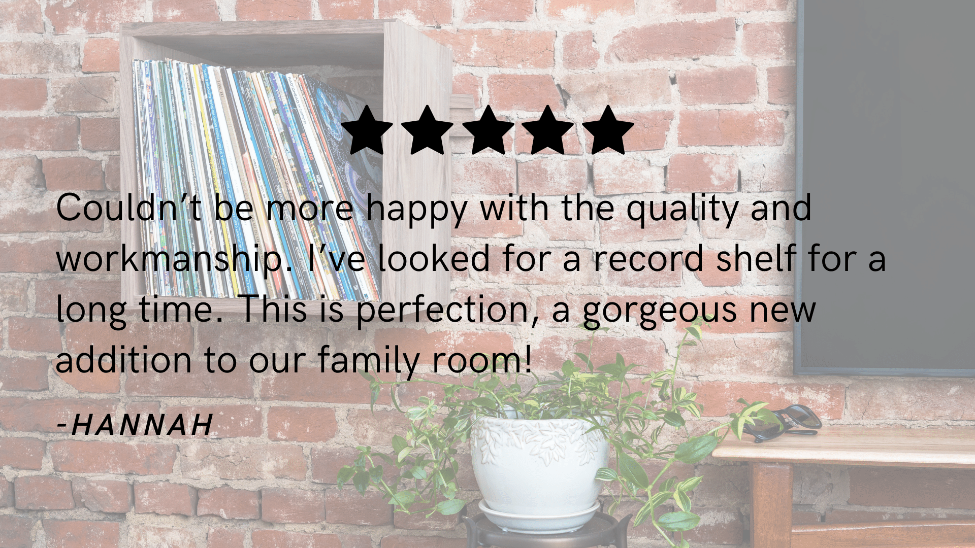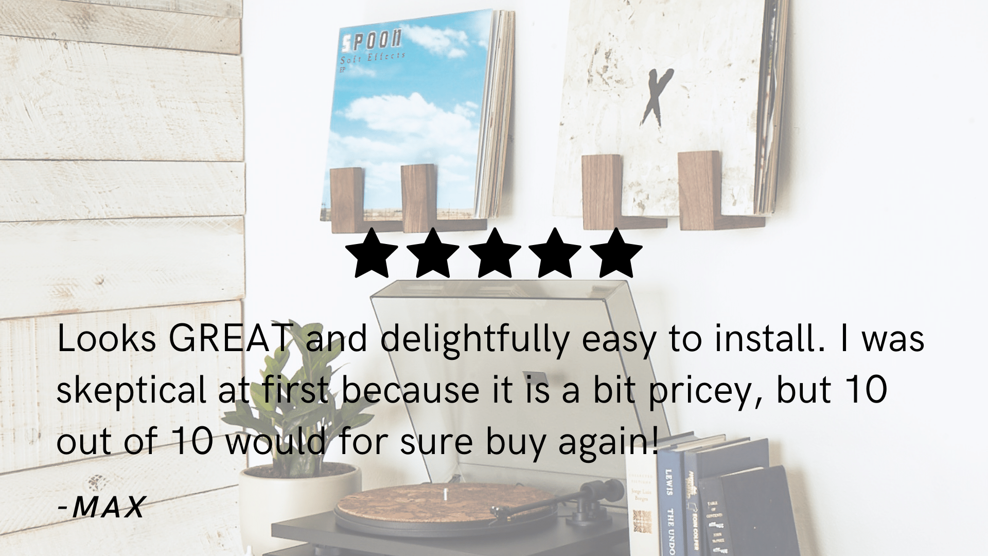 Handcrafted, minimalist record shelving and display pieces and shelving that store and showcase your records and turntable setup with style. Clean look, fantastic functionality, easy to install / setup. Don't sacrifice aesthetic for function and don't give up utility for look. Get both. Give your records and turntable setup the home they deserve.